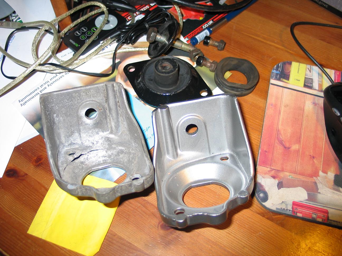 Interesting solution for the gearbox mounts, but the aluminium brackets look a bit cracked. Probably worth painting the brackets and/or bushes to stop Al-fe corrosion. Mine where well wasted around the inside of the dome, I've got 1 new bracket and 2 new bushes (bought before NLA) I plan to strengthen the other bracket with Al welding.