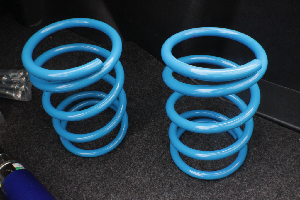 The other day i got my suspension set up through the other day which i ordered from Dai. Pleased with it and it came the day after i ordered it. I bought 3" blocks, front dampers and 3" lowering springs and lastly rear adjustable rear dampers. Here they are...