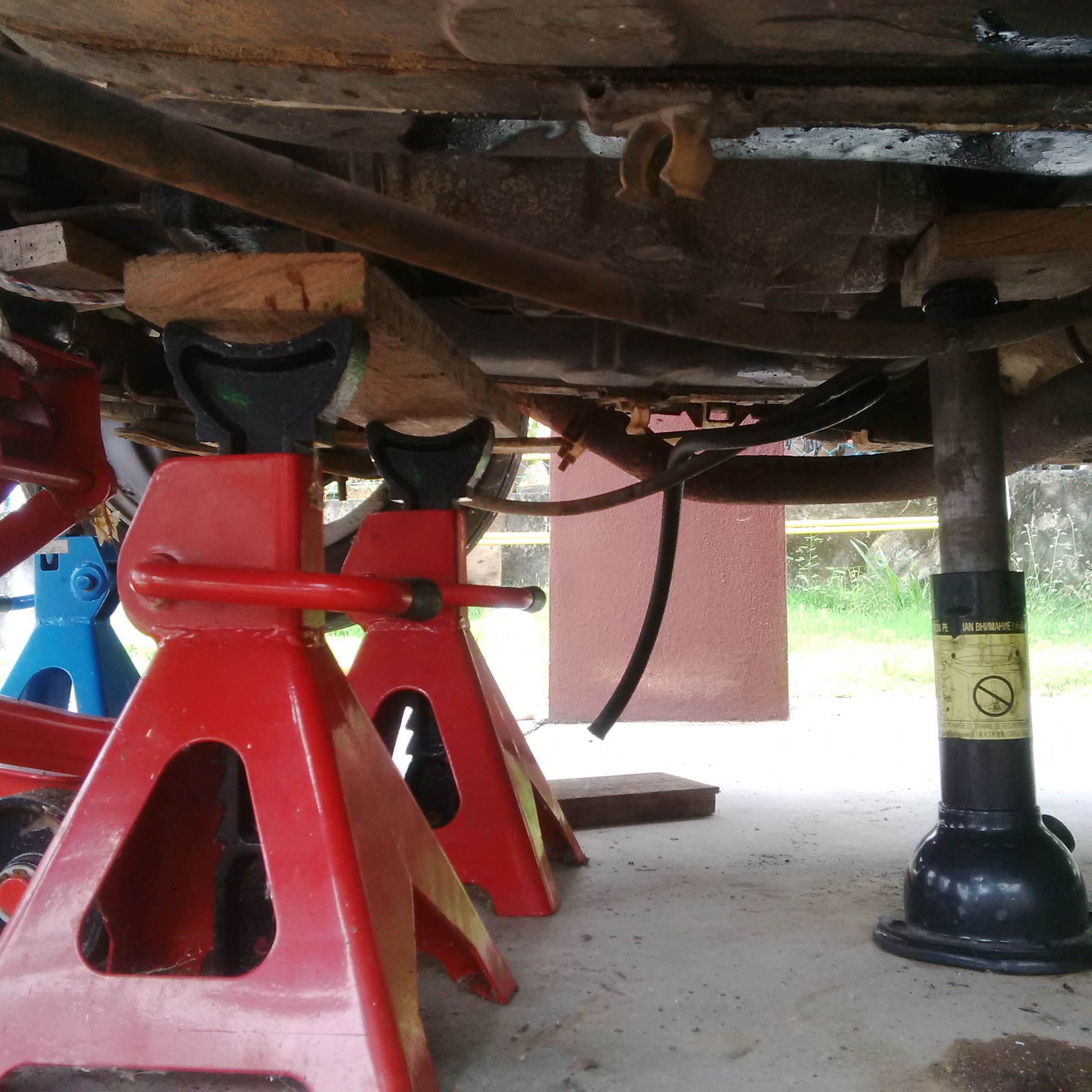 Good stuff, nearly there. But I think you may need to let it dangle downwards to get a good pull on it while supported in the middle. May need kick thumped and wiggled alot. Looks like you've removed the rear axle.