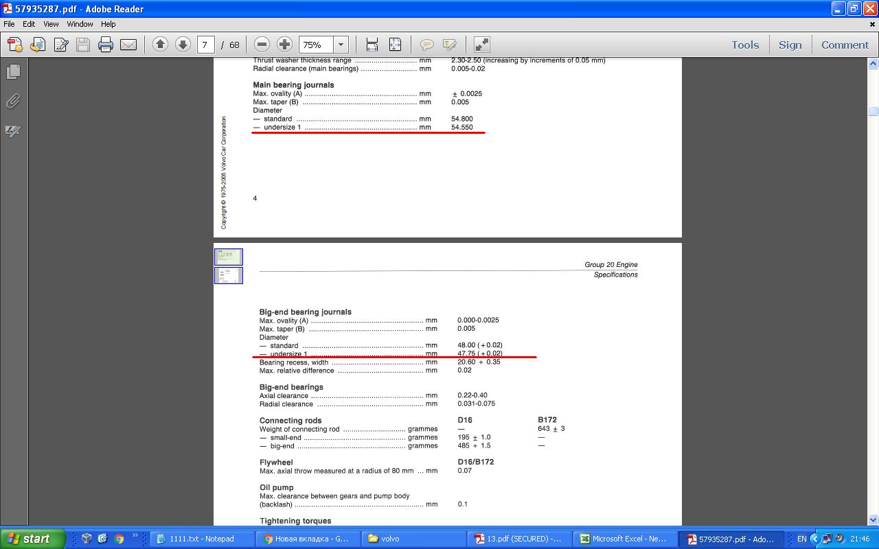 on the picture these are parts n11 and 12. And 3 types of oversized thrust bearing (additionally to std size)