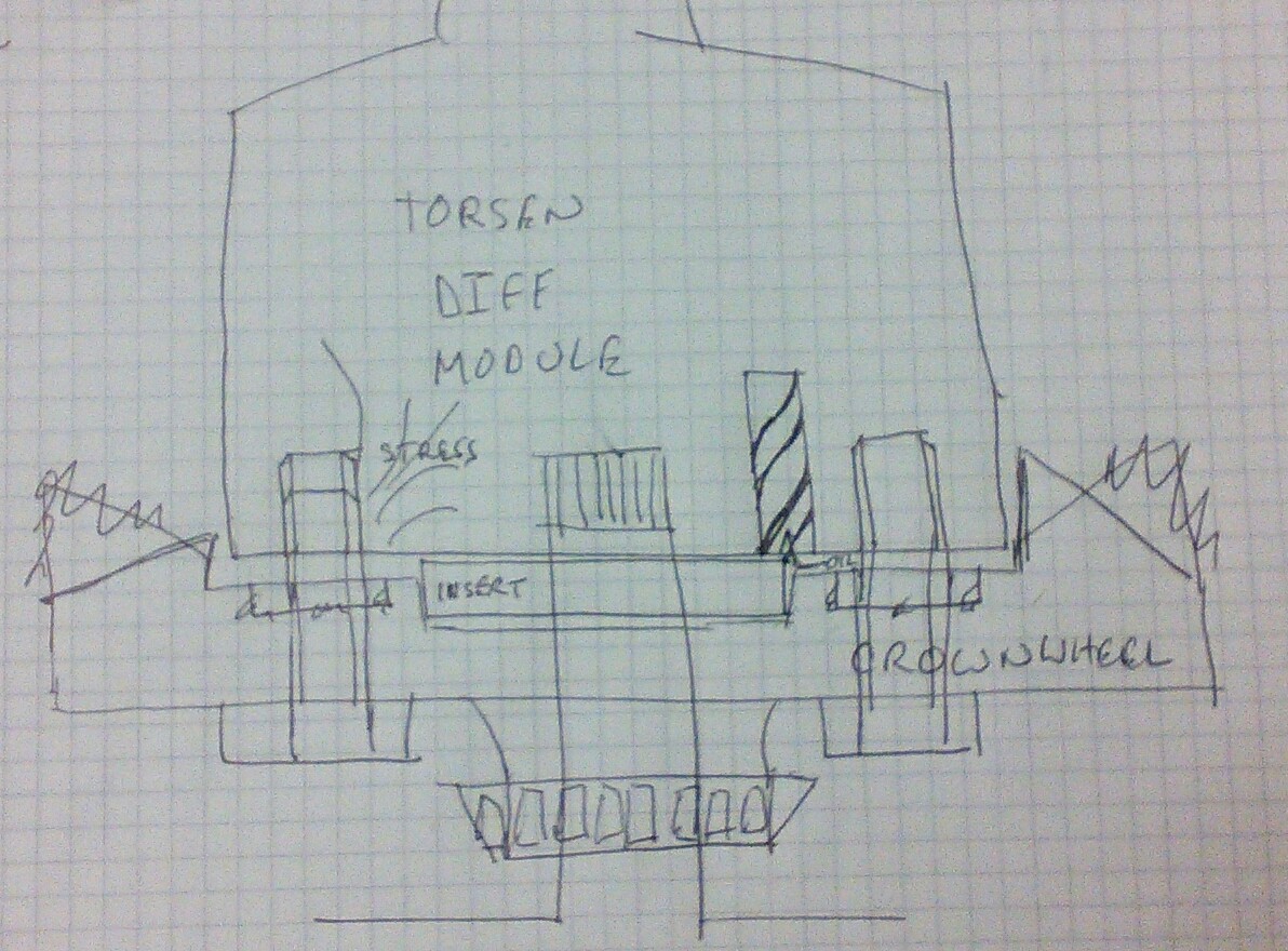 The deeper reason for the problem is that (in my case at least) the insert for the crown wheel lifts the mating surface of the module and leaves a gap between the 2 parts around the bolts. The base of the diff module is full of (purposful) holes and quite weak to the bolt torque bending the outside edge against this insert.