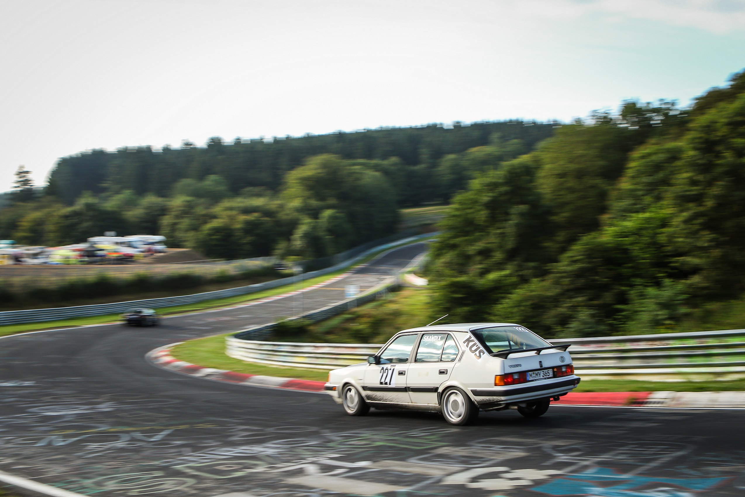 Tiny Update: after two years of resting (other f***ing projects reqruiring all my spare time) I have managed to get her back on the road, and to participate in one GLP on the Nordschleife - in the dry - Yeehaw! Lots of fun, even if i had to use my "wet-Options" uniroyal Rain Sport in 175/70/13 in the dry (don't ask... seriously woobly sidewalls..turn in, and wait.... oh, is something happening? Every corner required stragical planning)