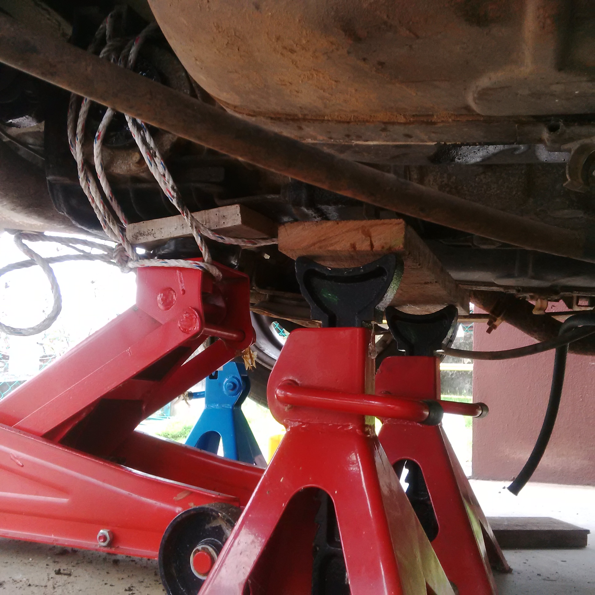 Good stuff, nearly there. But I think you may need to let it dangle downwards to get a good pull on it while supported in the middle. May need kick thumped and wiggled alot. Looks like you've removed the rear axle.