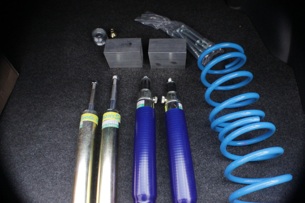 The other day i got my suspension set up through the other day which i ordered from Dai. Pleased with it and it came the day after i ordered it. I bought 3" blocks, front dampers and 3" lowering springs and lastly rear adjustable rear dampers. Here they are...