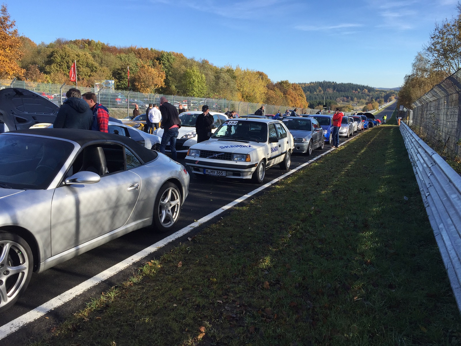 Finally got around to painting the remaining front spoiler white and did a Nordschleife track day. Brilliant wheather, parly damp track.
