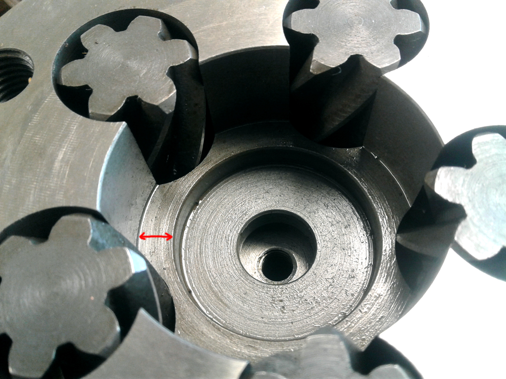 The Spacer is flush like I said in my last post. So don´t think its a good Idea to take more from that in the lathe. My question or suggestion is therefore that the center gear teeth surface meeting the spacer (red arrow in first picture), or the surface that the center gear is sitting on (red arrow in second picture), could be/should be corrected with the lathe.