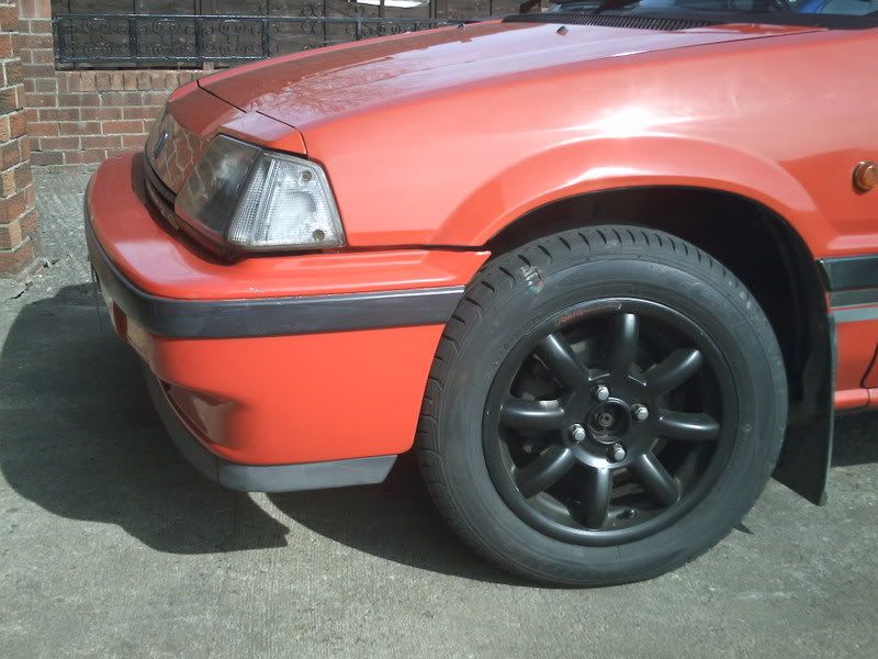 there 4x100pcd 14" minilight rep made by fortis, they came off a mx5 but they might fit a 340/360 as well as others. there fitted with toyo cf1 tyres(185 65 14r) there sprayed black theres a few bits peeled off( like 3 bits) and 1 or 2 runs from when the last owner sprayed them.