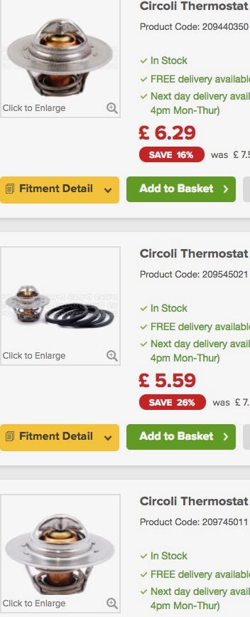 So when I enter my reg number on Euro Car Parts I get given this for a thermostat...