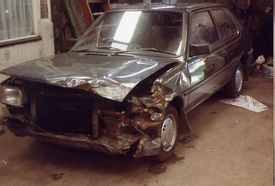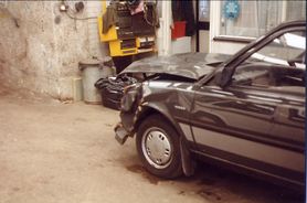 Well i know i have told some of you guys about these pics, and finally i have put them on here!! This is how my uncle bought the car in 1994!!! He repaired it and put it back on the road!! As you can see as well as other things the front panel is caputt so this is when the 360 panel was welded in!!! It also explains why the passenger side headlight looks new in some of the pics of my car!!!