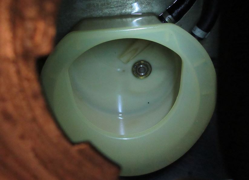 The method for emptying seems to be heavy braking followed by hard RH. There is no lip on the pot at the front to reduce it flying out the top under braking, whereas there is for cornering. Also the fill route is underneath from the RHS. Also the fill rate may not be that great when compared to a B230FT at full power.